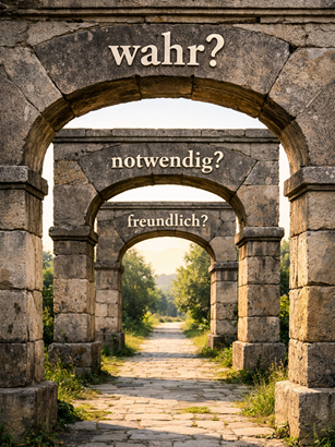 "Bevor du sprichst, lass deine Worte durch drei Tore gehen: Ist es wahr? Ist es notwendig? Ist es freundlich?"