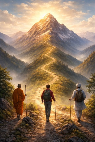„Viele Wege – ein Gipfel.“ (stark verdichtet, bildhaft)